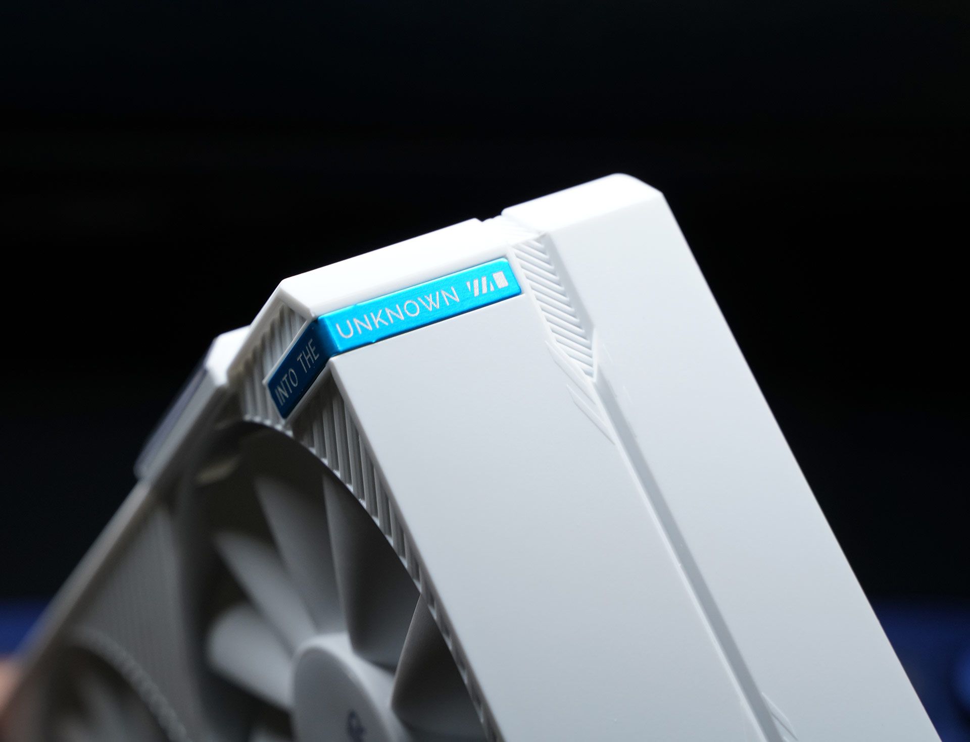 蓝戟Arc A770 Photon 8G显卡采用全白色配色,相比其他友商一众眼花缭乱的配色,纯白给人一种素雅的既视感,尤其是目前纯白色海景房流行的今天,纯白配色显卡是少之又少。