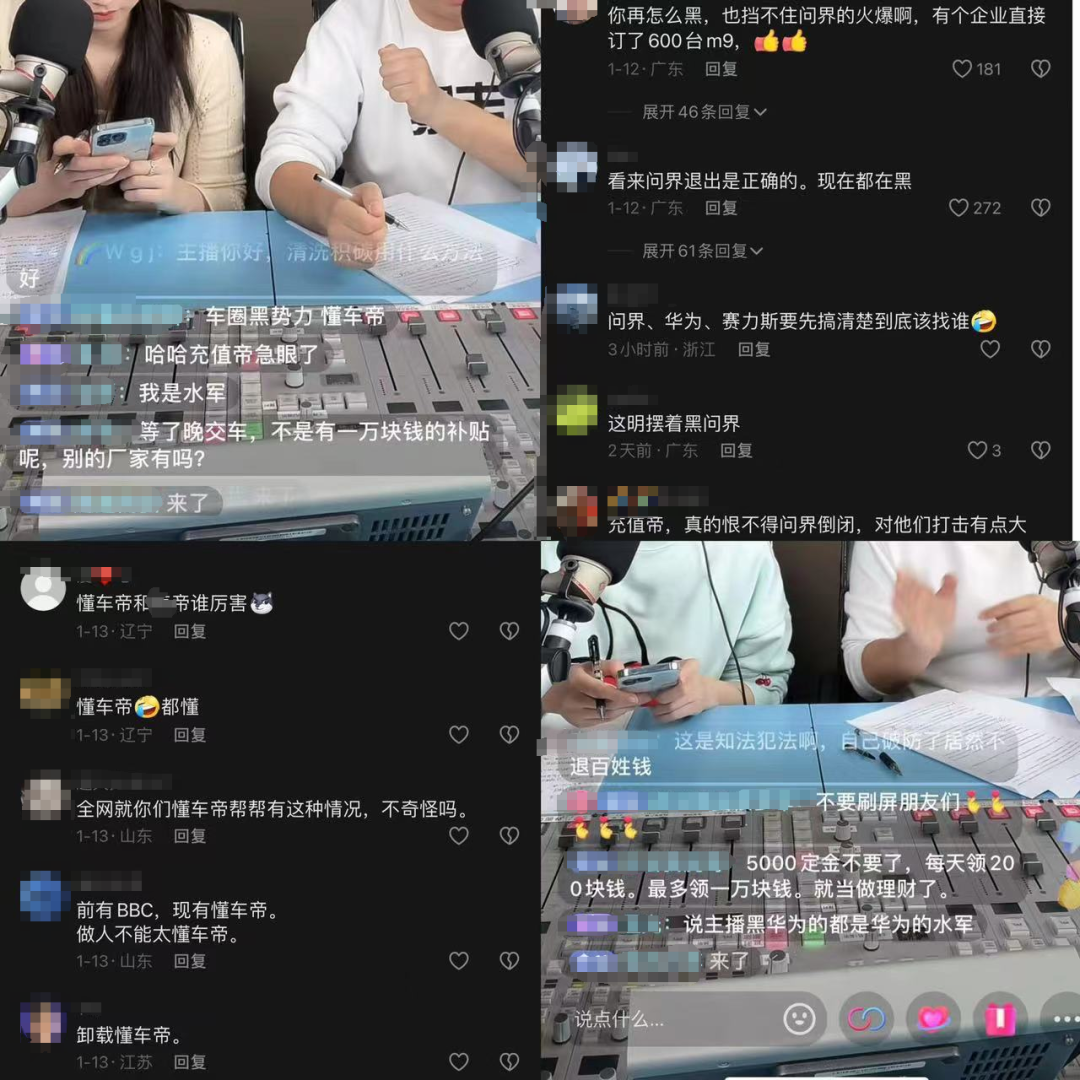 今天直播间的一句质疑“你还是中国人么”让我们突然发现,最近的汽车圈似乎出现了一件“怪事”:任何人不能说问界不好,一旦说了,就涌出一些网友说你不支持问界、不支持华为,说你是“黑子”,然后翻出一些未经证实的旧账。