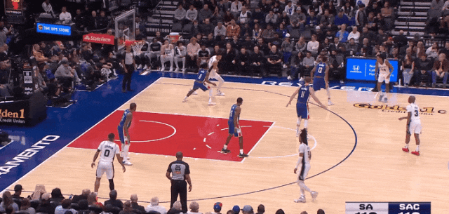 国王上小个子换防,文班亚马背打后转身上篮——这一步很轻易,但懂背打的都知道:能转过身来不容易,他转过来了。