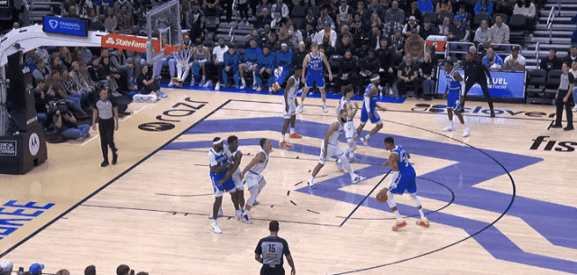 113平,被换防,他背身撤步面筐突破,低手上篮。
