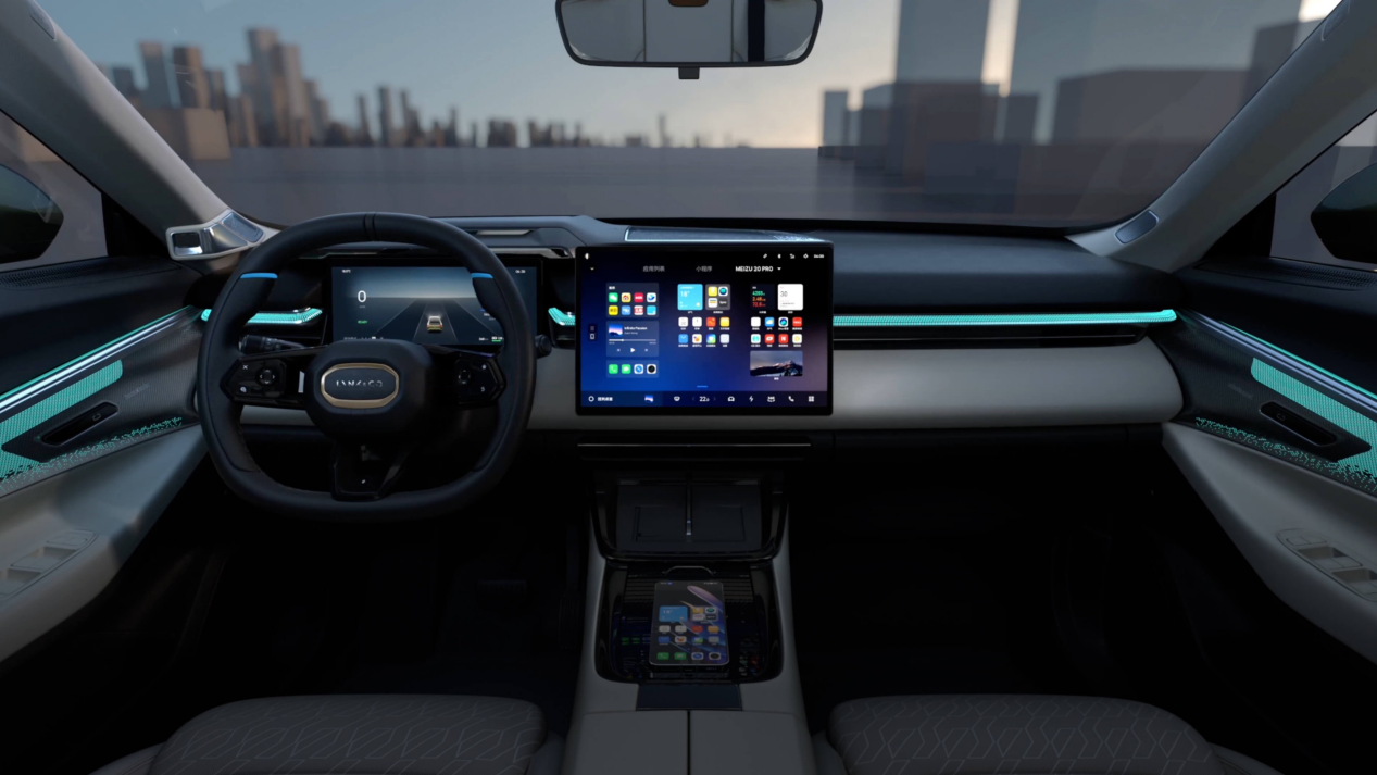 坐进领克08EM-P车内,92英寸无界AR-HUD率先吸引目光。该抬头显示系统具备超大画幅、超广视角与超高清晰度,支持驻车观影、游戏娱乐,以及行车过程中的导航、行车数据和智驾辅助信息显示功能。系统还可根据人眼高度自动调节画面显示位置,既提升驾驶便捷性,又保障行车安全。配合流光环绕氛围灯,进一步营造出沉浸式座舱体验。