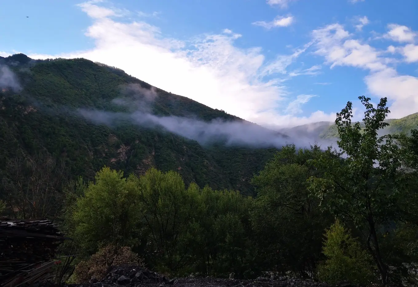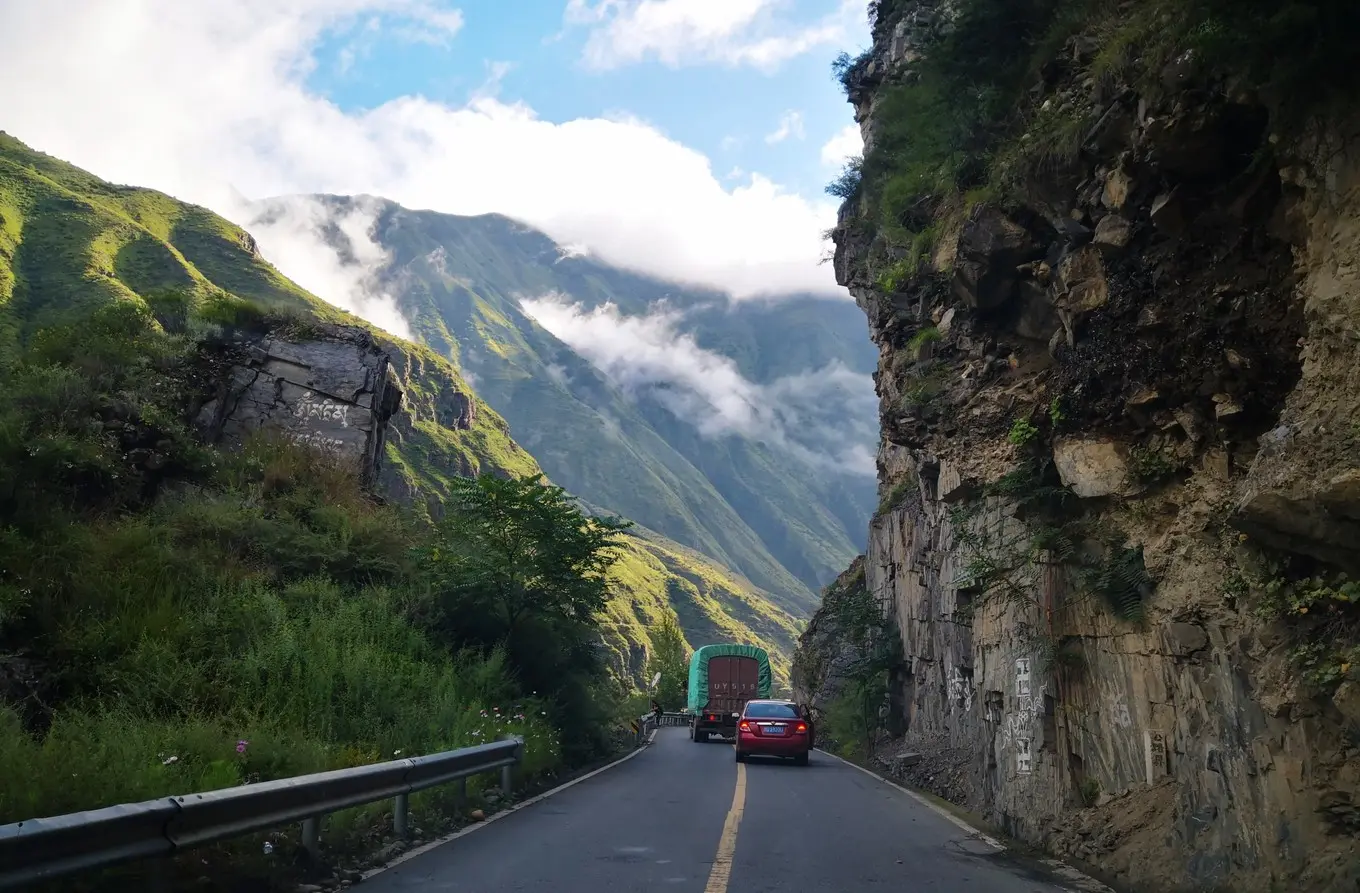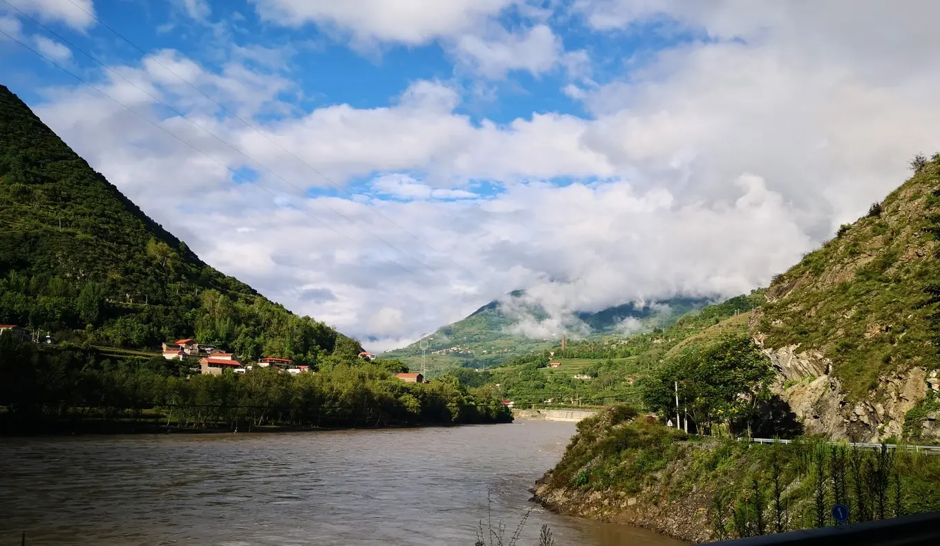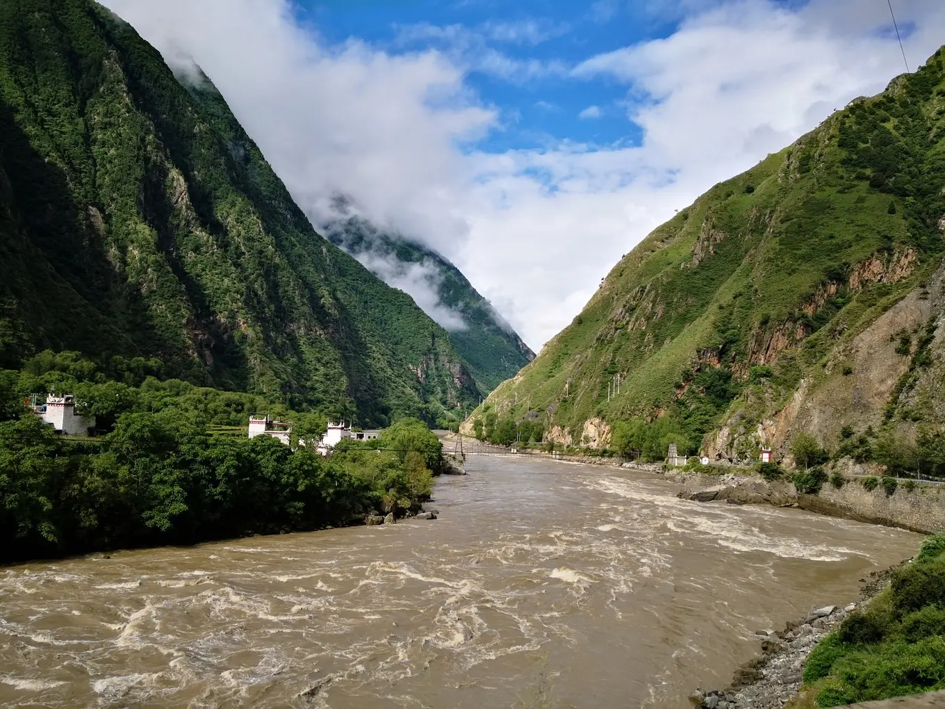 今天是我们这次出游天气最好的一天,因为 丹巴 至 小金 的道路山体滑坡后一直没有修通,我们放弃去 小金 的计划,决定一直沿 大渡河 南下 泸定 。