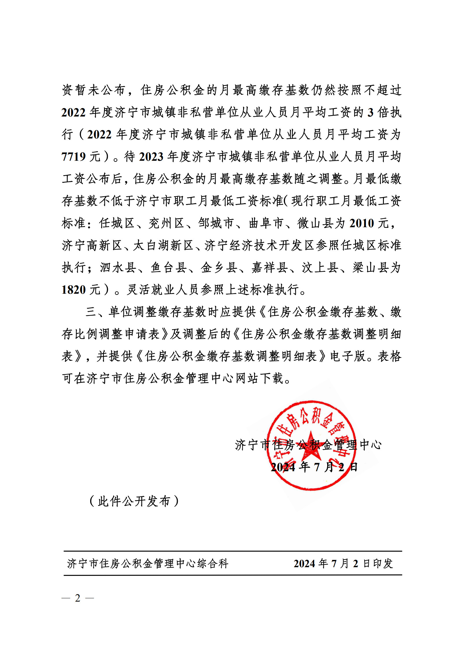 近日,济宁名城事小编相关渠道获悉,济宁市住房公积金管理中心发布《关于调整2024年度住房公积金缴存基数的通知》,2024年度住房公积金缴存基数的调整时间原则上为2024年7月至9月。住房公积金缴存基数按照2023年度职工本人月平均工资计算,具体如下:
