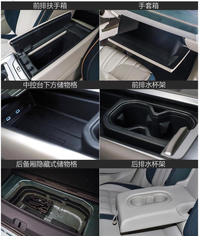 ID.7 VIZZION储物空间实用,扶手箱及中控台下储物格长宽俱佳,能容大水瓶、三脚架及单反等。与ID.6 CROZZ比不逊色,其大空间与档次感设计在新能源车中少见,值得称赞。