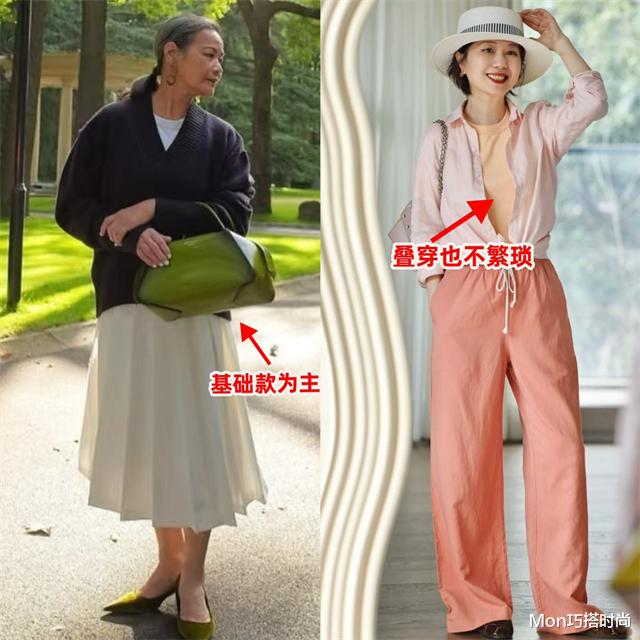 穿搭的最高境界就是 “less is more”!中年女人要穿出高级感,就得避免选择图案复杂、颜色花哨的衣服,尽量以纯色为主,用基础款单品进行搭配,减少花里胡哨的装饰物,让整体造型更加协调统一。