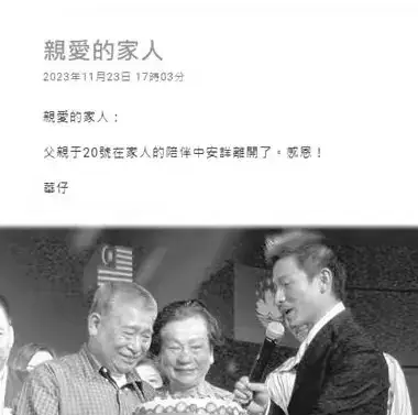 刘德华父亲刘礼去世,享年89岁。刘父生前在2003年曾患膀胱癌,刘德华倾尽心力照顾,老父亲顺利康复并享儿孙福二十多年!