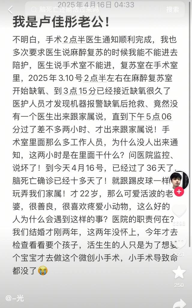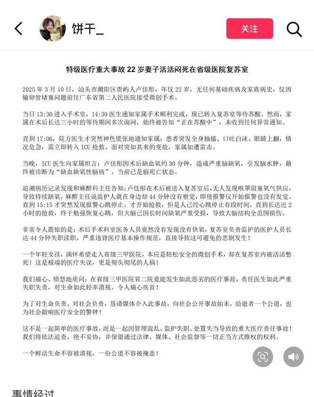我们期待相关部门能够采取有效措施,加强医疗安全管理,避免类似的悲剧再次发生。
