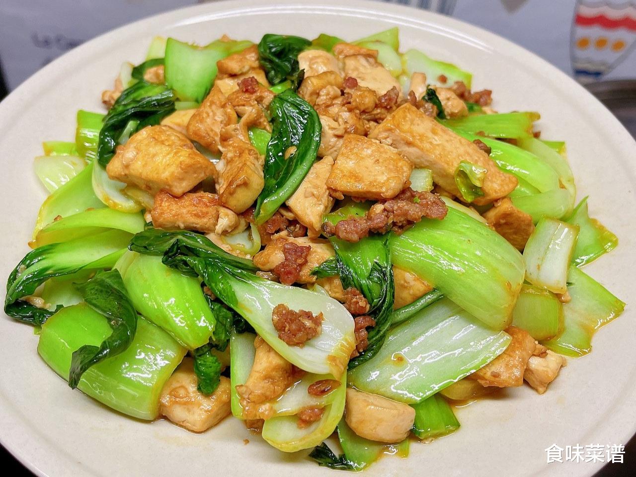 3、按照这个方式炒的油菜豆腐,荤素搭配,营养美味,大人孩子都喜欢吃,鲜香美味,营养丰富,好吃不油腻,上桌一会儿就光盘,简单又快手。