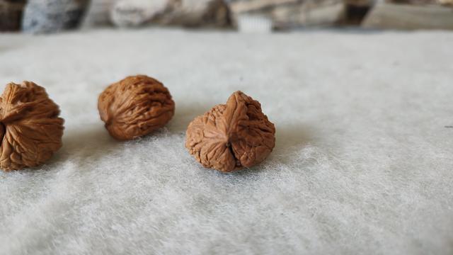 从配对儿来说,如果真的遇到“99%相似”的两颗核桃,实际上也可以算是一种“异形”,特别是当这两颗核桃超级规整,满肉且端端正正的时候,这种核桃同样也是“非常形”、可以算作“超正异形”的极品。