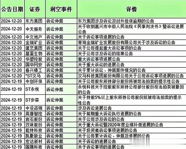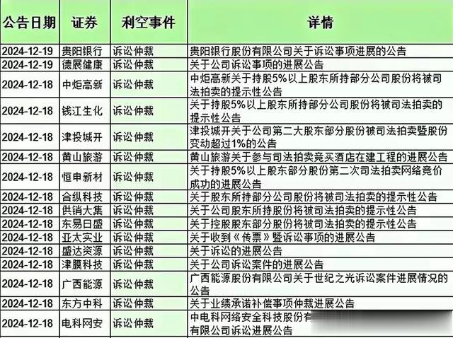 下面是近期利空个股名单大全,投资有风险,入市需谨慎。资料仅供参考不能作为投资依据。