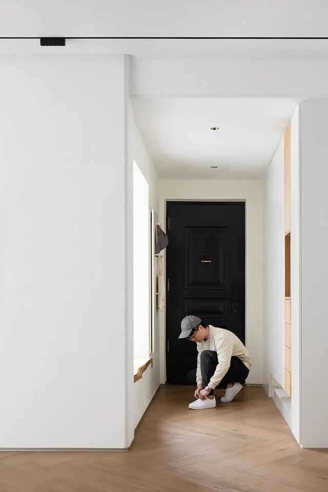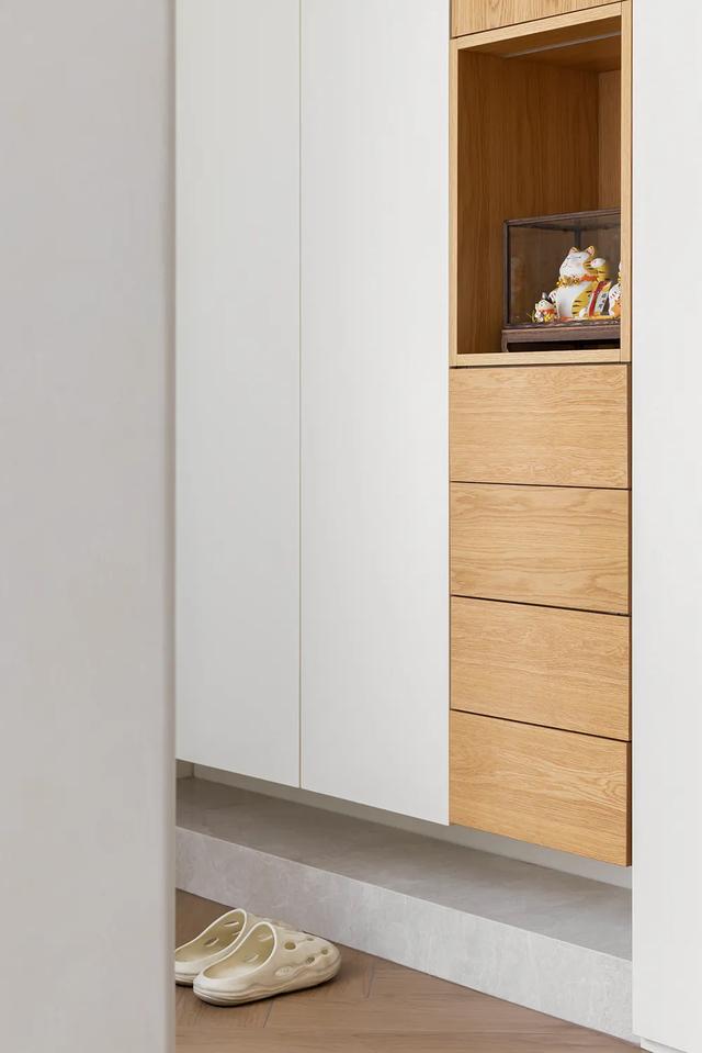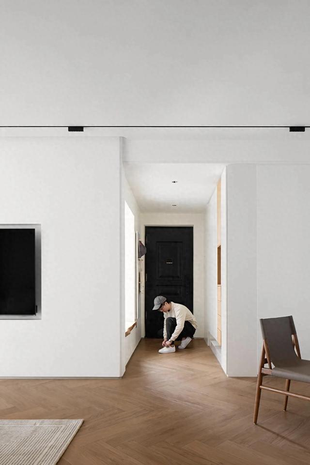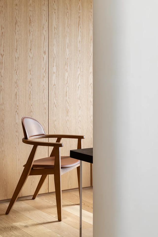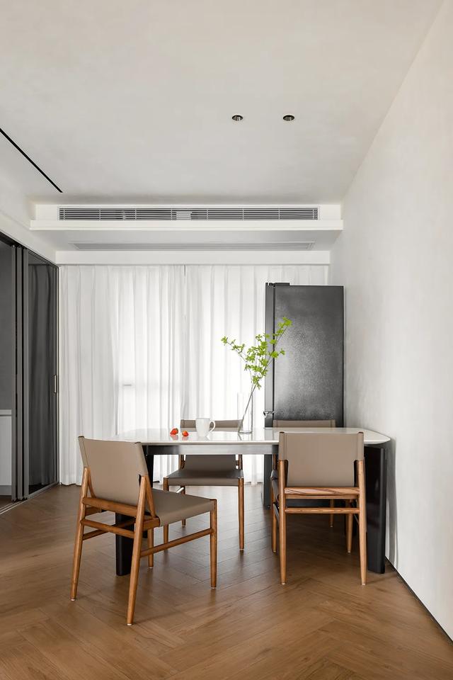 本案结合业主的需求,将四房改为三房,在设计手法上,去繁留简,材质使用大量橡木木皮,墙身则是用了肌理感比较强的涂料,使之更贴近自然,配上舒适恰到的比例和空间尺度,满足现代极简的居家生活。