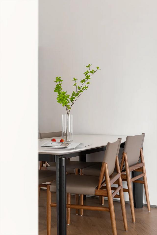 餐厅与客厅呈开放之姿贯连,人与人的交流界限被逐层打破,建立起一个强有力的纽带,串联空间始末,将生活本味绽放于各个角落。