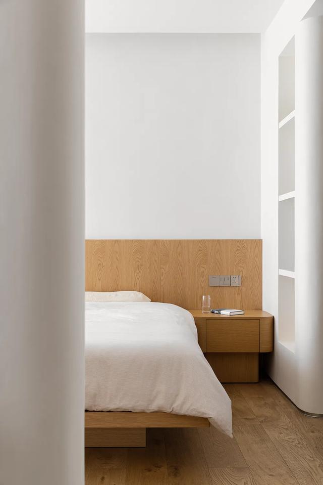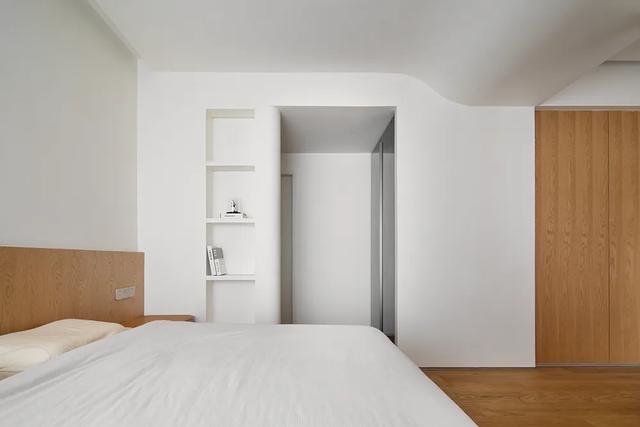 整体布局中,设计师规划人居功能的结构运用。卧室的设计更巧妙融入了收纳衣物的实用功能,从容展现空间的多面利用,塑造出完整统一的家居形式美感。