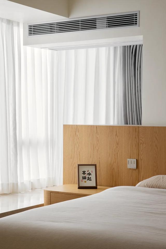 主卧延续了整体的风格统一设计,光线柔和地穿过窗帘,映照出温暖的光影,卧室的静谧素雅,在简约中找到宁静,不仅是对空间的塑造,更是对内心身处的愿望。