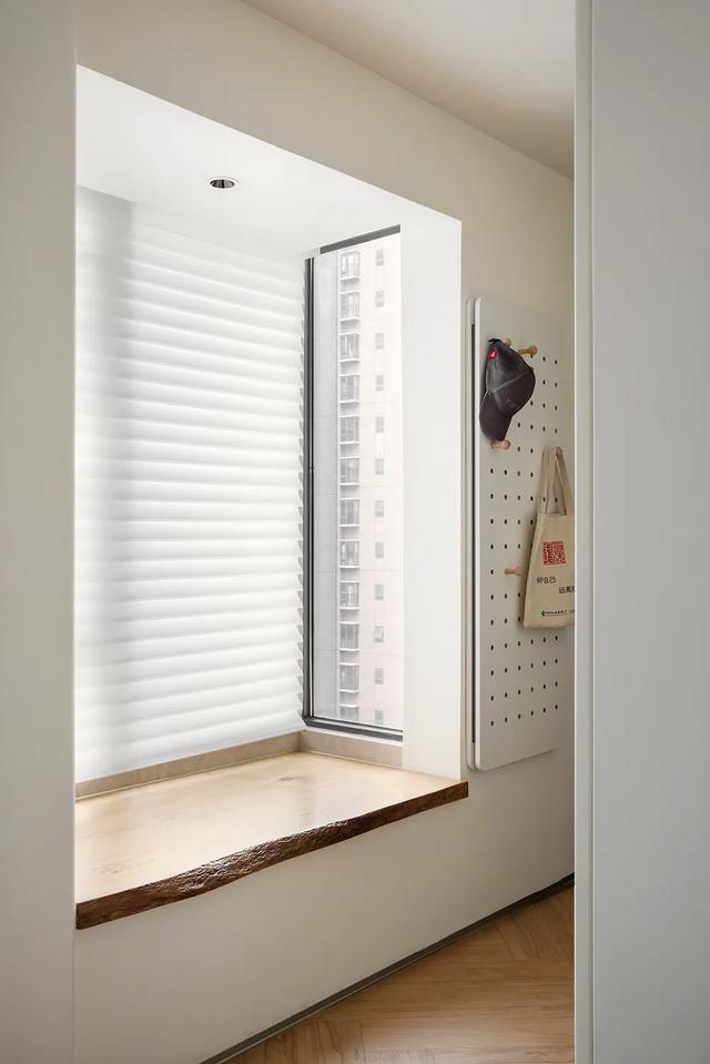飘窗的木板采用了业主老家院子的一块旧木头,业主小时候经常坐在上面乘凉,听爷爷奶奶讲他们年轻时候的故事,以此表达业主对故乡的思念。