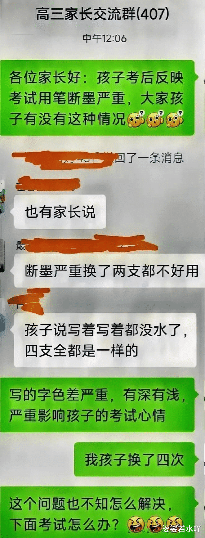 第一天考试结束,高三家长交流群里面就议论纷纷,有家长询问:孩子反映考试用笔断墨严重,不知道其他人有没有这个情况。