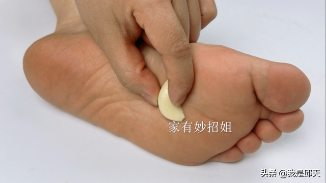 天气一热,我们的脚部就容易出汗,尤其是那些本身就是汗脚的朋友。脚部出汗多,随之而来的就是脚臭问题了,每次一脱鞋子,难闻的脚臭味还会让人非常的尴尬。想要去除脚臭,我们也可以利用上一点大蒜。先将剥好的大蒜从中间切一刀,将它一分为二,然后拿起其中的半块大蒜直接涂抹在脚部就可以了,像脚底、脚趾之间,我们都涂抹一下。大蒜中含有可以抑制细菌和真菌的硫化物,而我们的脚气通常都是由于真菌的感染,所以利用大蒜它就能有效的帮助我们去除脚气了。