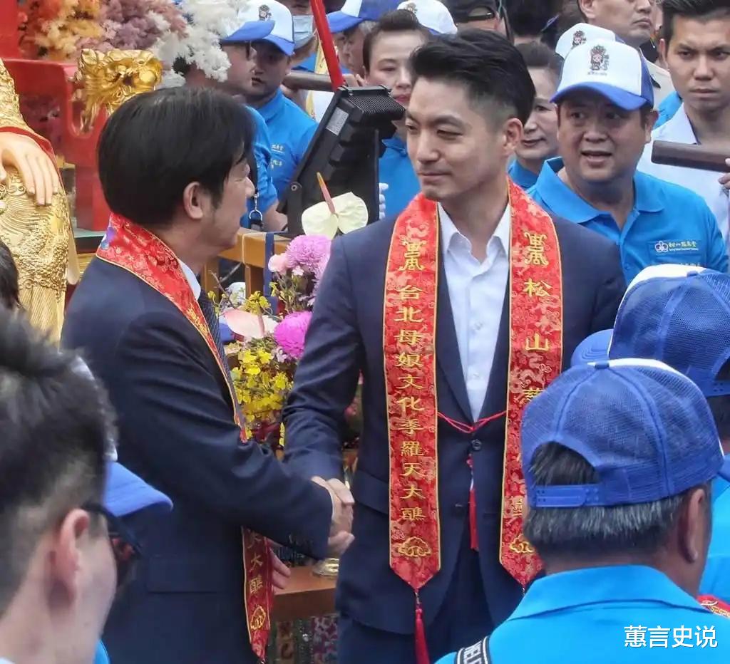 就在参加台北集会后的2025年4月19日,赖清德和蒋万安共同参加了台北市松山慈惠堂母娘文化祭活动。