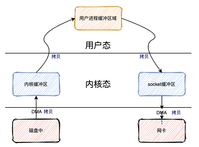 在传统的数据传输方式中,当应用程序需要将数据从一个地方复制到另一个地方时,通常需要经过多次数据复制操作。例如,从磁盘读取数据后,需要将数据复制到内核缓冲区,然后再复制到应用程序的缓冲区。这样的数据复制操作会增加CPU和内存的开销,降低数据传输的效率。