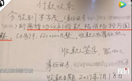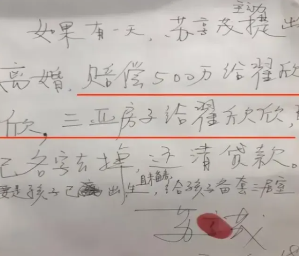 被逼无奈,苏享茂签下了离婚协议,上面写着“海南房产首期支付660万,已支付完毕。剩余340万在离婚120天内一次性付清,每延期一天,赔偿10万元违约金。”