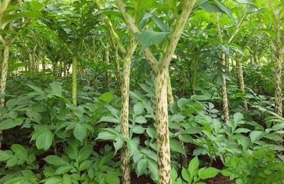 在魔芋的品种方面,也有很多有趣的事情。除了常见的魔芋品种,还有一些冷门的品种也各有特点。比如说白魔芋,它的块茎颜色洁白,口感比较细腻,在一些高端的食品加工中很有市场。还有花魔芋,它的花朵特别漂亮,就像一朵盛开的莲花,不过它的块茎相对来说没有白魔芋那么细腻。另外还有珠芽魔芋,这个品种比较耐寒,在北方的一些寒冷地区如果种植得好的话,产量也很可观。我听说在东北的一个小农场,有个种植户尝试种珠芽魔芋。刚开始的时候,他也不知道该怎么种,就去请教了农业专家。专家告诉他,珠芽魔芋虽然耐寒,但是在生长初期也需要一定的温度保护。于是这个种植户就在温室里给珠芽魔芋搭了小拱棚,调节温度和湿度。经过大概三个月的时间,珠芽魔芋长得非常好,块茎又大又壮。