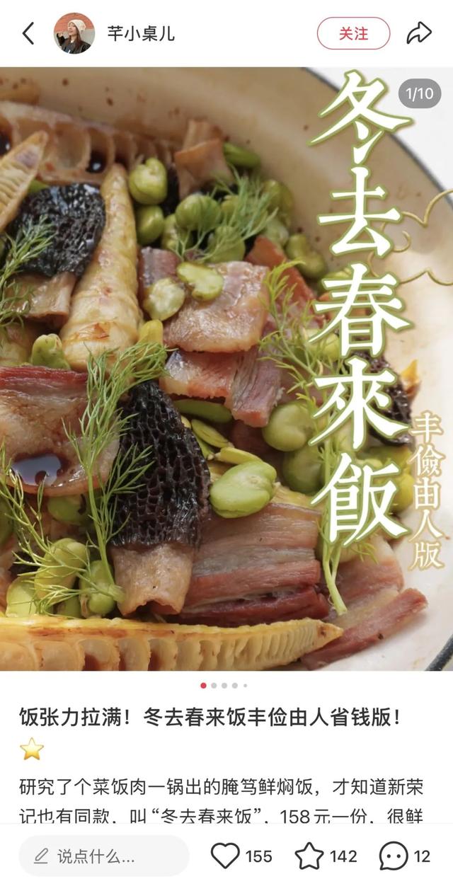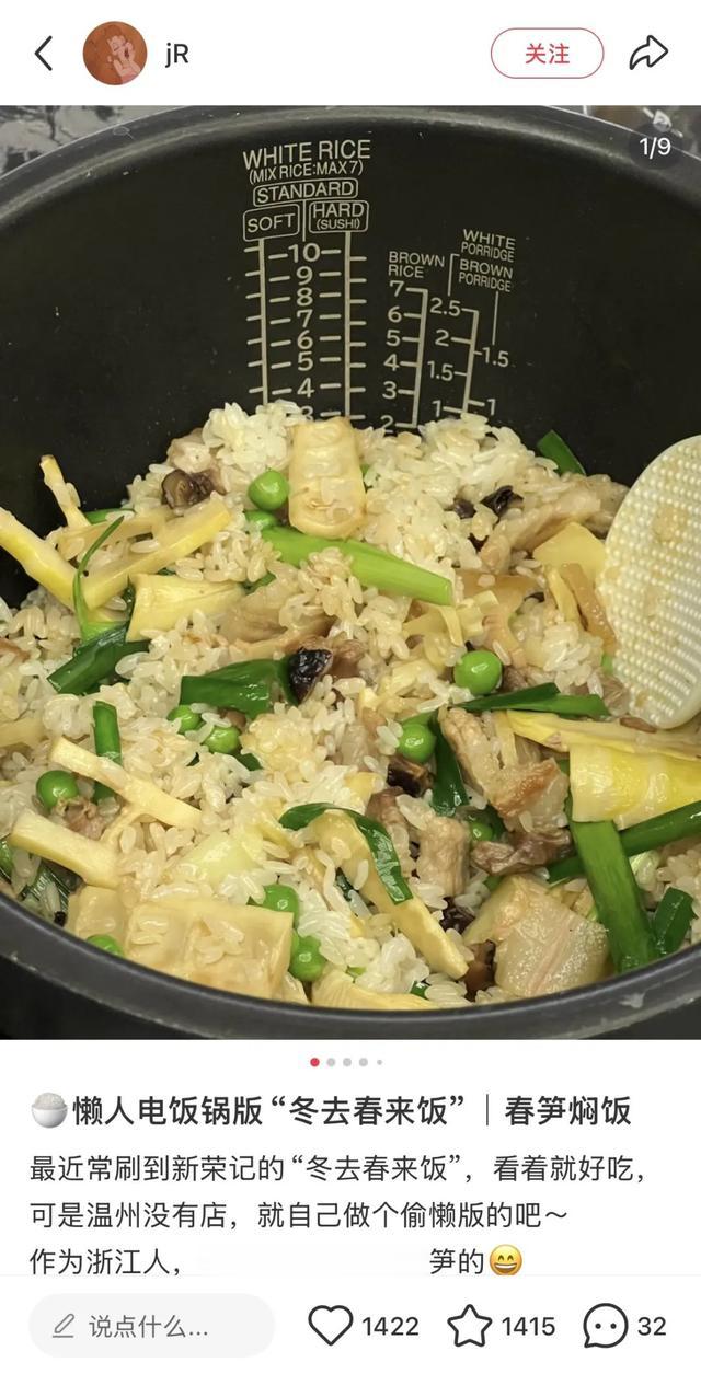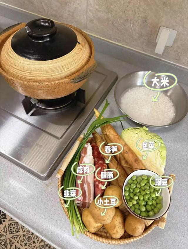 PART 01什么是“冬去春来饭”?“冬去春来饭”是一道融合了春季时令食材的创意主食,主要材料包括糯米或大米、春笋、土豆、腊肉或腊肠、豌豆以及韭菜等,辅以猪油、老抽、生抽、蚝油等调味料,通过精心烹制,将主食、蔬菜与肉类融合,不仅色彩诱人,口感丰富,更蕴含着春天的气息与营养。