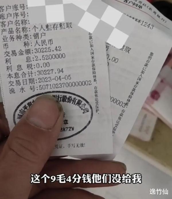 4月5日,有网友发视频称,在河南平舆农村商业银行某个支行取钱,本息合计30227.94元,结果只收到了30227元。对此,银行柜员的解释是,“没有零钱,不满1元全部抹掉。”银行柜员发现顾客在录视频取证后,又从抽屉里面找了8毛钱给到顾客手中。