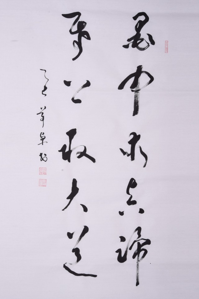 从记事起,由初悟喜欢书法到醒悟着迷书法,三十多年来,至始至终深挖文字细微、粗狂、严谨、自然、均衡的美感规律;以露、藏、中、偏的运笔风格,提按、使转、顿挫的自然法度,心手双畅研习领悟;用纯、真、儒雅、流畅、刚柔并济、入古求新的理念;在锋须往来之际,作天质自然的折转,笔墨畅志、心手一体,以“尽心”“净心”“静心”之势,导运笔墨,在有法的体系内,作无法的极致表现。放手写心,只为了传承惠及子孙;只为了写好中国字,做好中国人。