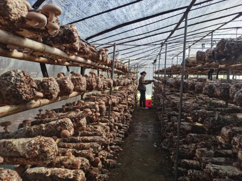 近日,位于大南峪镇李家河村的康县汇天英杰种植农民专业合作社香菇大棚内,香菇长势喜人,村民们忙着采摘香菇。目前,合作社建起了6亩12个大棚40000个菌袋的香菇种植基地。预计今年累计采摘新鲜香菇7.8万余斤,销售额达24万余元。(来源:大南峪镇)