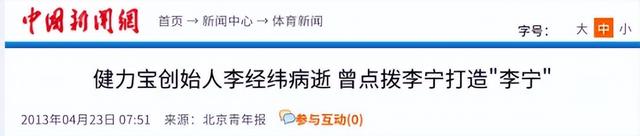 参考信息:北京青年报——健力宝创始人李经纬病逝 曾点拨李宁打造“李宁”