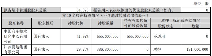 中汽股份2024年三季报显示,江苏悦达集团有限公司为第二大股东。