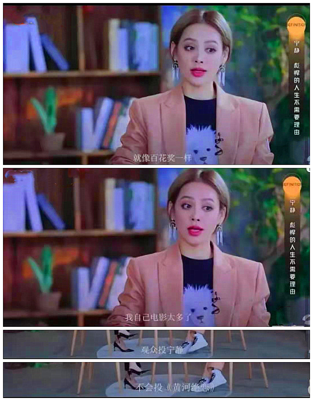 宁静参加“浪姐”时接受易立竞的采访,全程“豪言”频出。觉得自己一直是一线、最红的时候就是现在,称自己电影太多,观众为《黄河绝恋》投票是冲着自己……