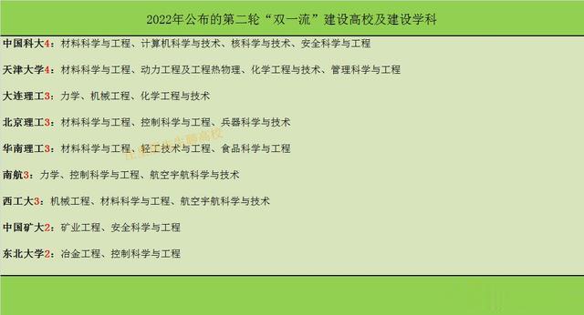 2022年第二轮国家“双一流”建设高校及建设学科中,工科类入选学科数量排名如下: