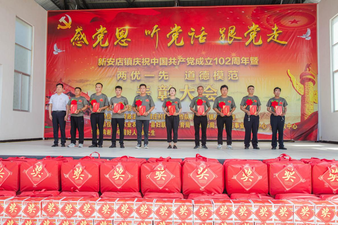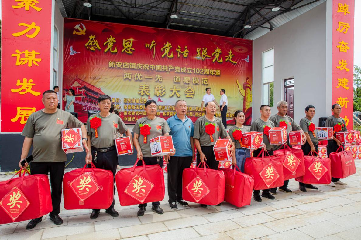 6月28日,在驻马店市确山县新安店镇庆祝中国共产党成立102周年暨“两优一先”、“道德模范”表彰大会现场,张大生满脸汗珠,跑前跑后,自费2万多元,为当天受到表彰的100位先进个人购买服装和毛巾等奖品,还提前搭建遮阳棚、编排了文艺节目,让父老乡亲欣赏接地气的节目,感受身边平凡人的伟大。