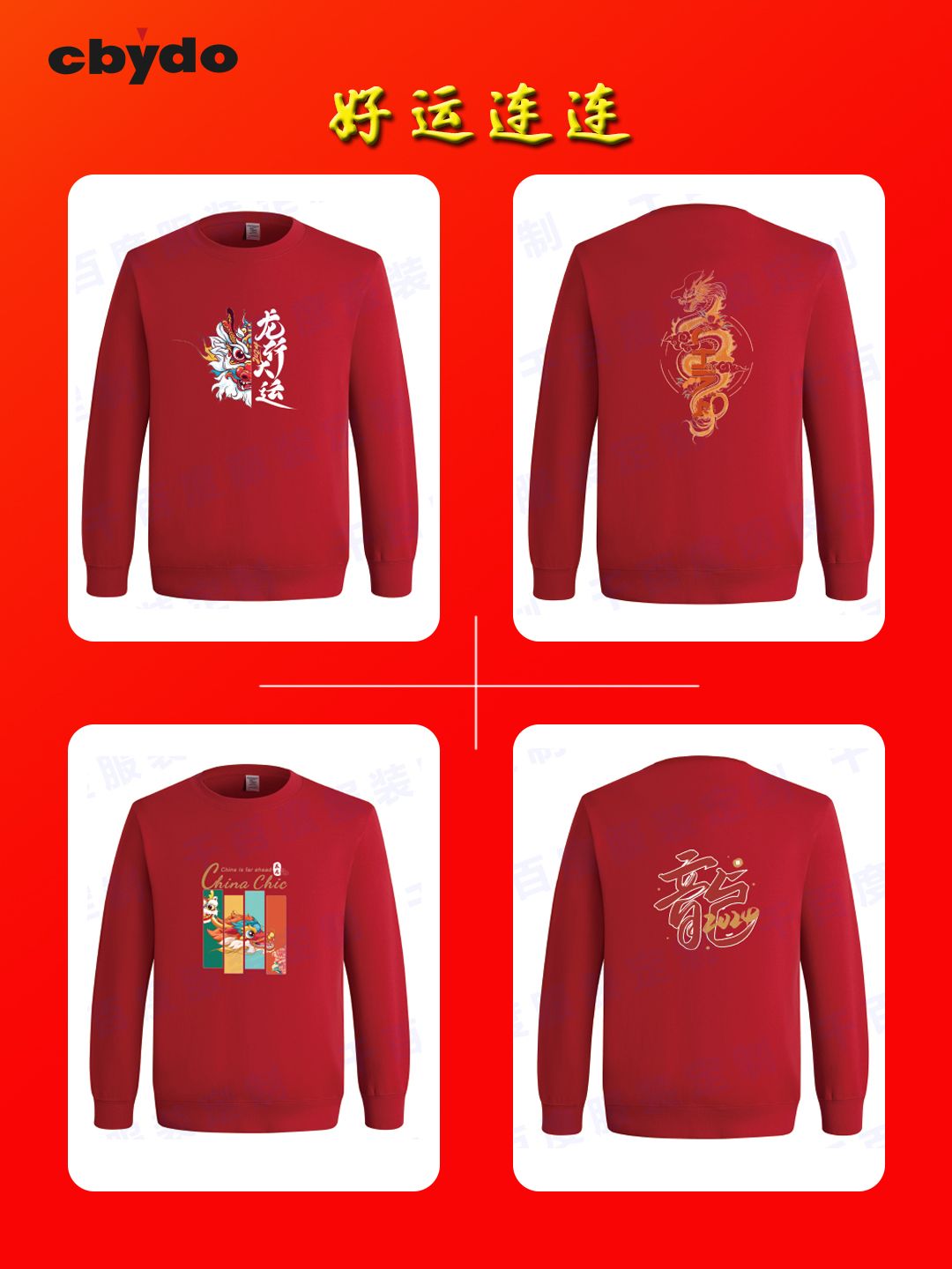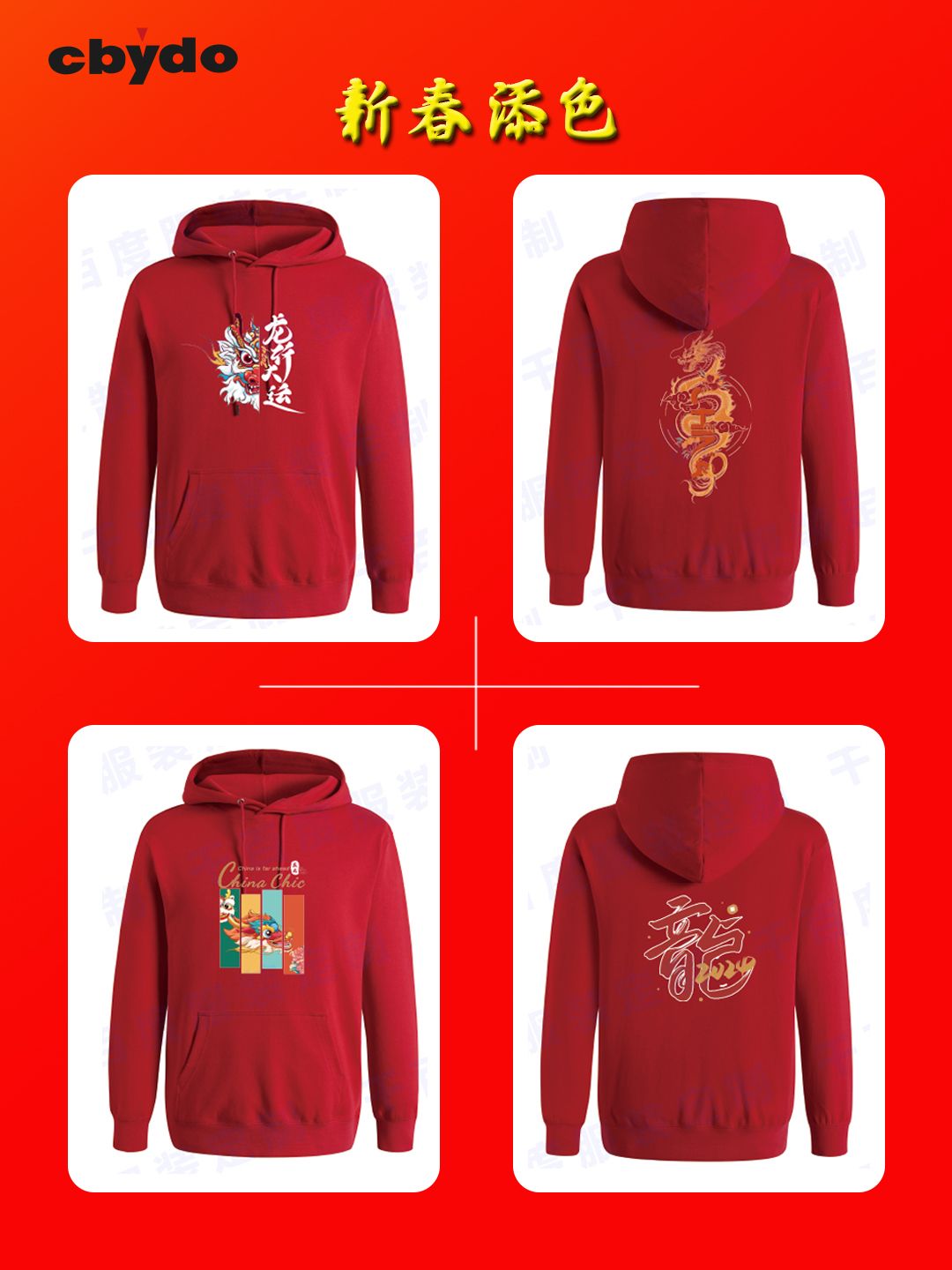 2023最后一周了,即将迎来新的一年。春节也还有不到两个月的时间,兔去龙来辞旧岁,继往开来贺新春。新年的服装准备好了吗?年会的时候员工统一着装穿什么?今天给大家分享具有国风的特色的中国红卫衣。