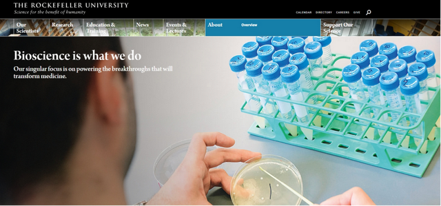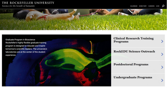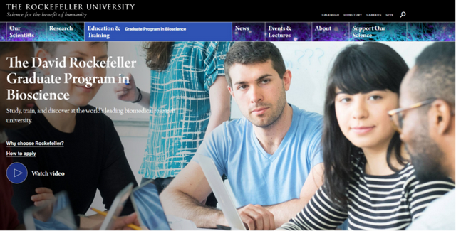 戴维洛克菲勒生物科学研究生项目The David Rockefeller Graduate Program in Bioscience是世界闻名的研究生项目,开设生物医学科学biomedical sciences、化学chemistry、生物物理学biophysics领域,进行研究和研究生教育的机会。