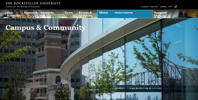 洛克菲勒大学(Rockefeller University,简称RU),是世界领先的生物医学研究大学,位于美国纽约曼哈顿。学校吸引了来自世界各地的顶尖科学家和研究生,在这里开展科学研究,造福人类。大学的起源部分源于个人悲剧。1901年1月,老约翰洛克菲勒的孙子死于猩红热,此后,这位资本家和慈善家制定了建立研究中心的计划,洛克菲勒研究所成为美国第一个生物医学研究中心。