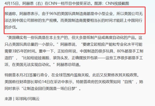 美国有线电视新闻网(CNN)指出,特朗普实施高额关税政策,这让玩具企业陷入了窘境。