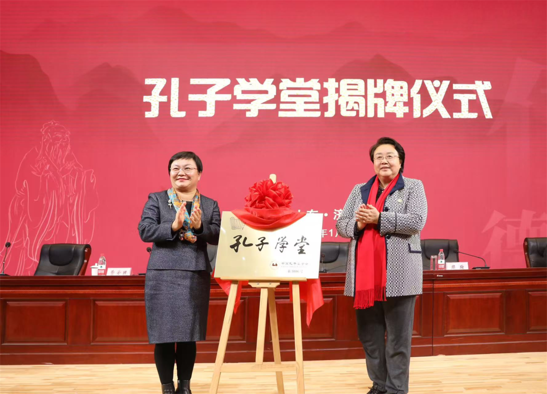 周敬首先欢迎出席仪式的领导、嘉宾,并介绍学院已有70余年历史,扎根博大精深的儒家文化厚土,始终秉持“德厚 才高 业精 志远”校训,将“仁、义、礼、智、信”理念融入教育教学全过程,举办学院孔子学堂揭牌仪式,既是认真贯彻落实习近平总书记关于“两个结合”和中华优秀传统文化“两创”重要精神的务实之举,也是落实全国教育大会精神的具体举措,更是学院落实立德树人根本任务、深化文化传承与创新职能的落地实践,希望全体师生能够以饱满的热情和积极的态度,参与到“孔子学堂”的各项活动。