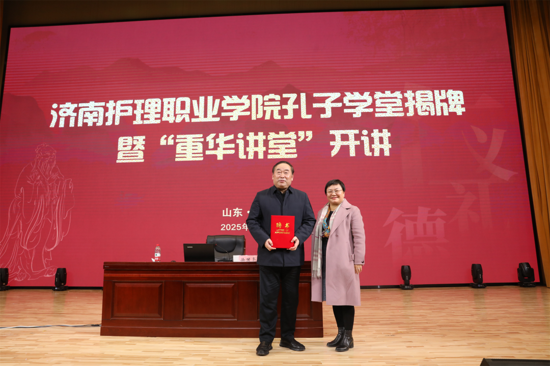 周静对学院孔子学堂的正式设立表示热烈祝贺。她表示近年来,学院秉承“德厚、才高、业精、志远”的校训精神,以“铸牢中华民族共同体意识”为主线,致力于构建文化育人大格局,希望济南护理职业学院以“孔子学堂”的揭牌为契机,深挖中华优秀传统文化精髓,充分发挥平台作用,紧扣护理专业,将仁爱、担当等儒家要义融入育人全程,为培育德技双馨的护理人才厚植精神土壤,让“孔子学堂”成为校园文化的鲜明亮色,为传承弘扬中华优秀传统文化、赓续中华文脉、推动文化繁荣贡献学堂力量。