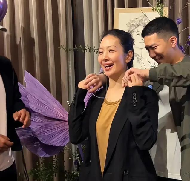 只见现场布置的非常符合她妻子的气质,无论是气球还是现场的花满满的都是紫色元素,神秘中透露着一份优雅。