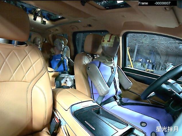 据说,测试场景模拟的是十字路口侧面碰撞,一辆车以60km/h的速度撞击另一辆以15km/h行驶的车辆的第三排。
