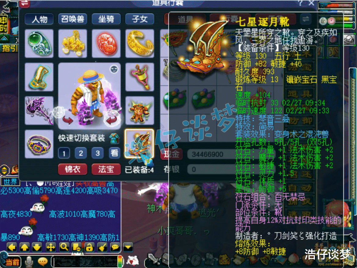 130级带琴音三叠的简易混沌兽套鞋子,打了13锻黑宝石。
