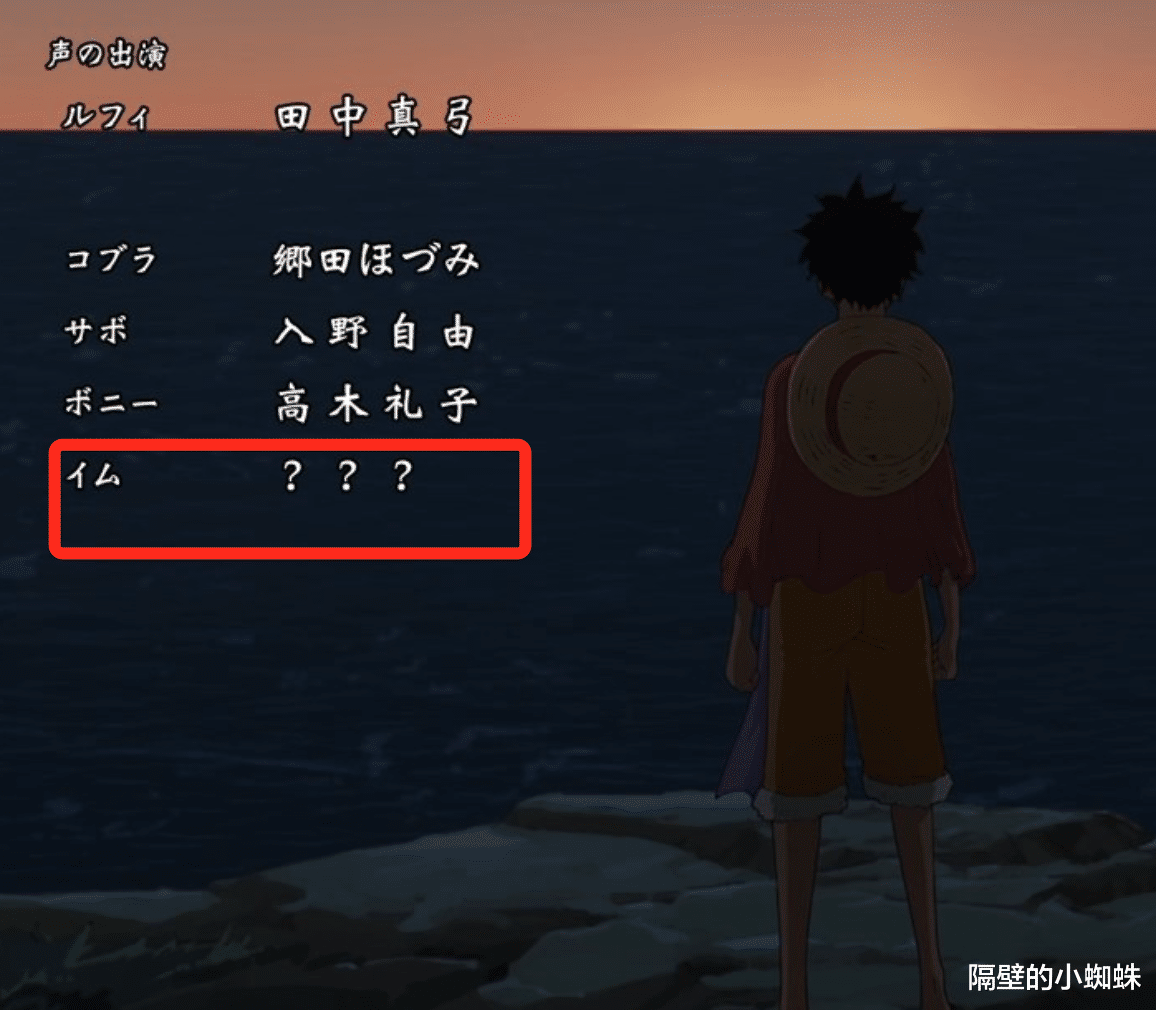 官方给出的声优变成了【???】,意味着动画组肯定跟尾田请教过,表示伊姆这个角色要怎么来配音,选声优。尾田为了不剧透自然会亲自安排。