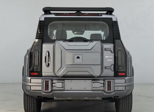 尾部设计方面,新车采用上窄下宽设计,融入大量机甲风与前脸形成呼应。两侧长条状尾灯组内部进行了熏黑处理,顶部则配备高位刹车灯。此外,尾部不再配备外挂式备胎,取而代之的是方正造型的外挂式储物盒。排气则采用隐藏式布局,尾部保险杠样式也和前脸相呼应,整体设计更显个性。