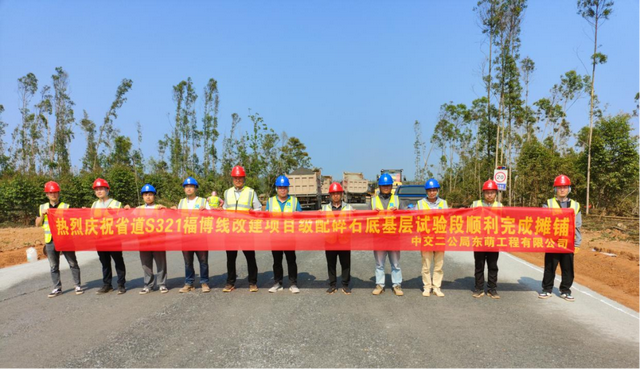 3月26日,省道S321福博线永顺至德老段改建项目级配碎石底基层试验段摊铺作业顺利完成,标志着项目建设已进入路面施工实质性阶段。