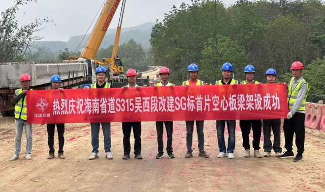 3月26日,海南省道S315吴西段改建项目顺利完成首片空心板梁架设任务。