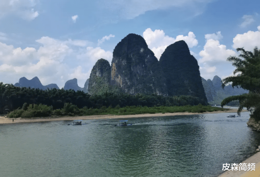 乘坐竹筏漂流在漓江上,两岸的山峰在水面的映衬下更显灵动,仿佛一幅动人的山水画。