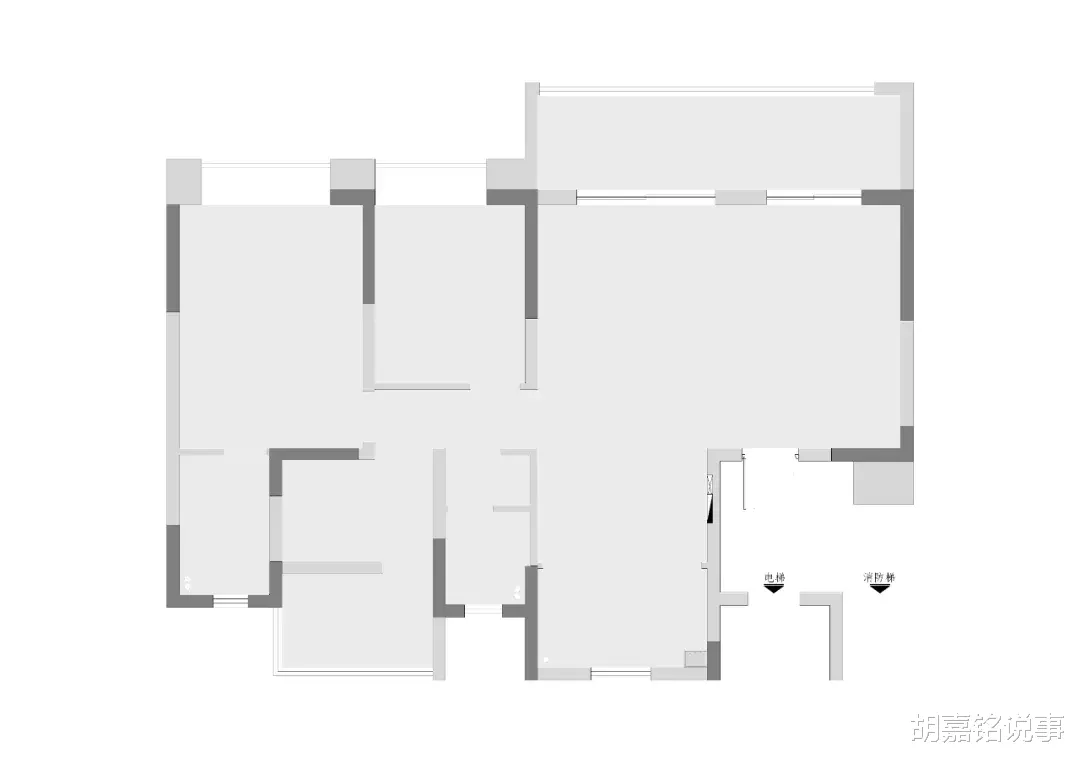 ①原始户型较为方正,所以只用整合零碎空间,比如打通阳台,扩大室内实用面积。②横厅用电视背景墙作为隔断,划分成客厅和开放式衣帽间。③全屋定制柜体和家具,提升家居氛围,让空间利用最大化。
