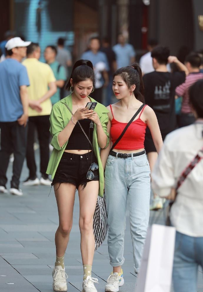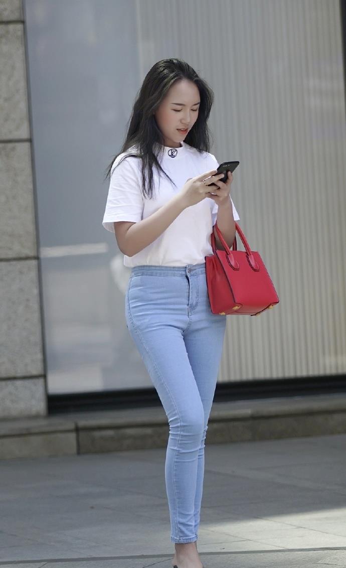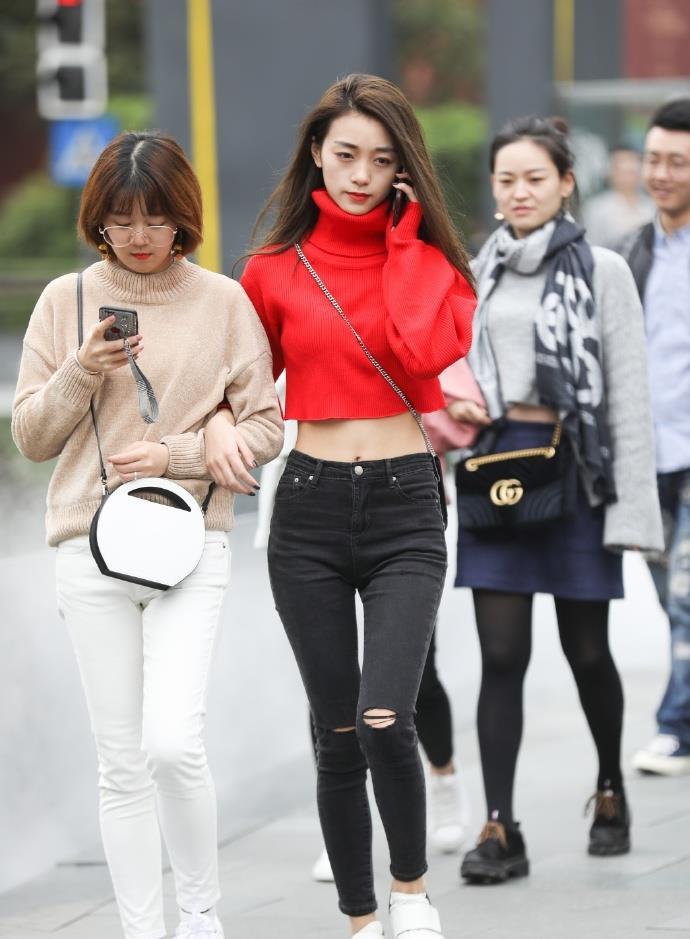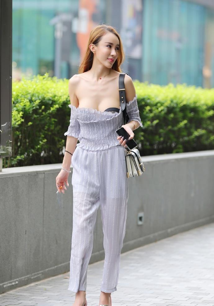 街拍:是衣服太重了吗?看来瘦子不适合穿一字肩啊…